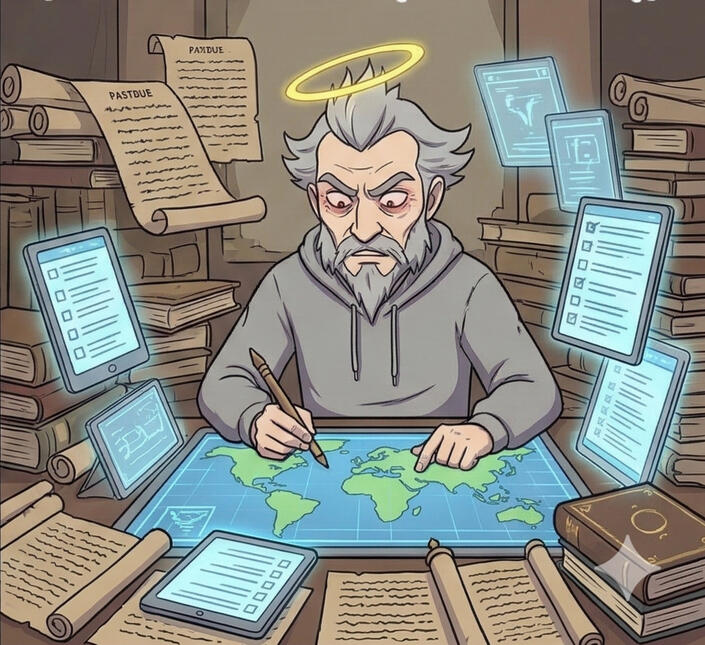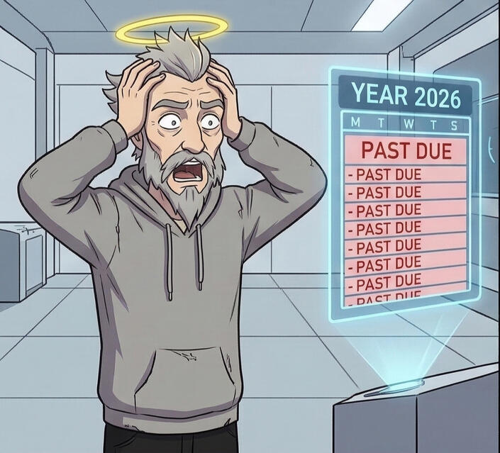 Frank is the Junior God of Honesty. He neglected his department for 5,000 years, woke up to LinkedIn, manifesting, and protein-rich labelling on literally any food, and is now very, very concerned.